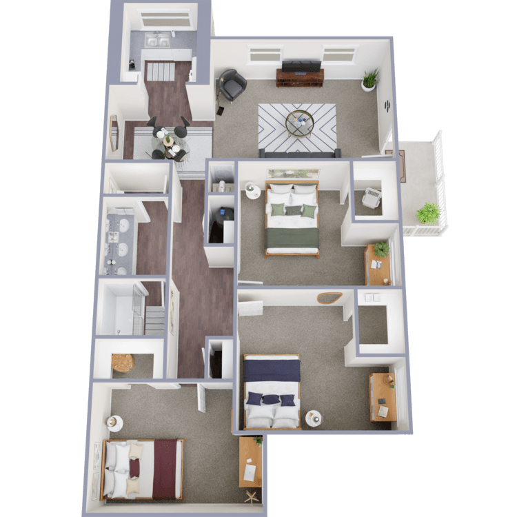Make yourself at home and explore our one, two, three, and four-bedroom apartments for rent. Central air conditioning and heating will keep you comfortable all year, while the fully equipped kitchen and dishwasher make cooking a gourmet meal easy. These fully furnished homes come cable ready. Enjoy your morning coffee at the breakfast bar, in select homes.
